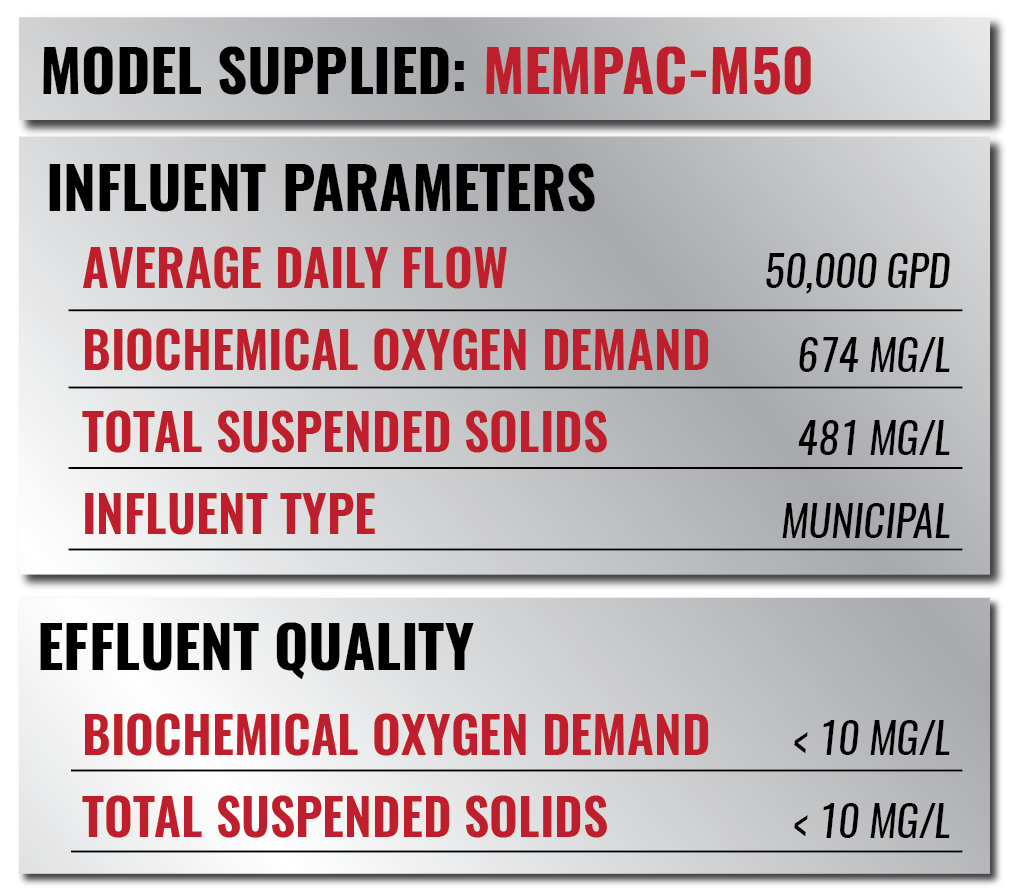 Cloacina designed and built a 50,000 Gallon Per Day (GPD) MEMPAC-M50, package membrane bioreactor with fully-integrated controls including remote monitoring and alarming for a coastal Communities Service District.