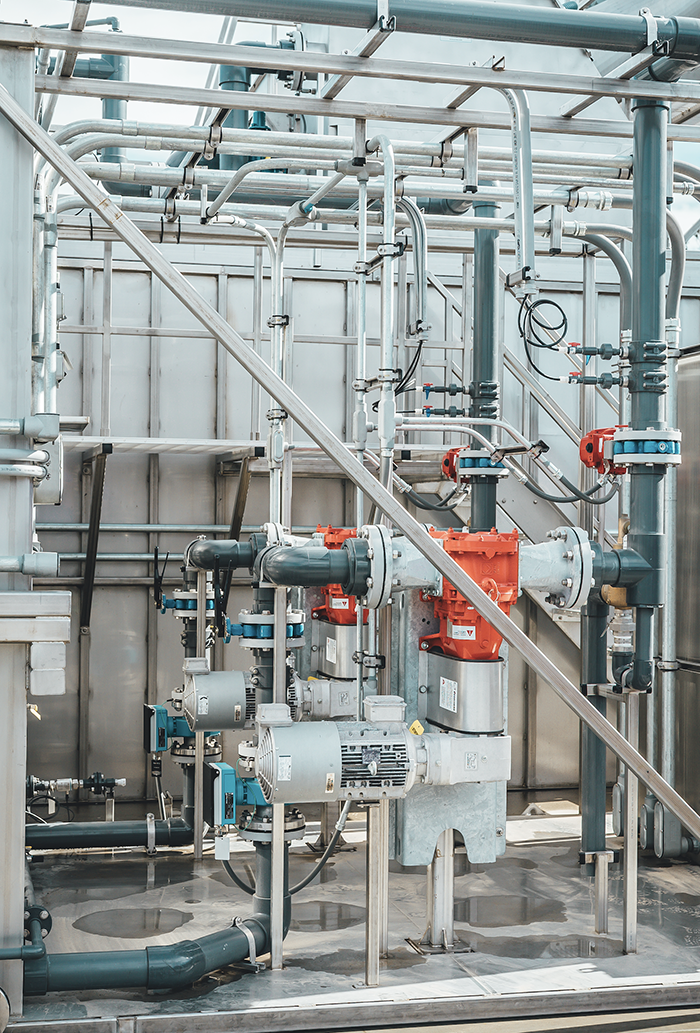 Unions, flanged fittings, and visible layouts make equipment fast to access and replace.