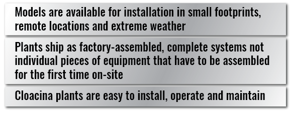 Cloacina manufactures package wastewater treatment plants designed specifically for developments that are capable of treating domestic or industrial wastewater or a combination of both. They are energy efficient, easily maintained, occupy small footprints and can reclaim 100% of the treated effluent for irrigation and sanitation purposes.